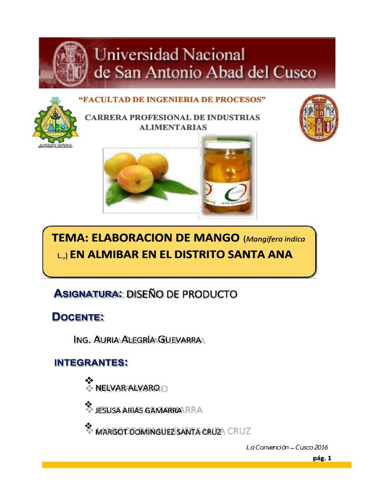 Elaboracion de Mango en Almibar PDF Mango Alimentos